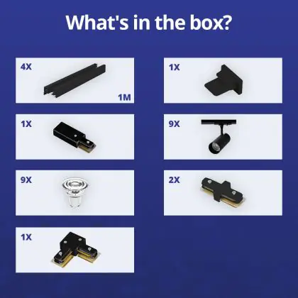 | Herstellername | Complete L shaped 1-Phase Track Set Black incl. 9x Spot fixture + GU10 2700K 3W Dim – 2 x 2 meter i | |