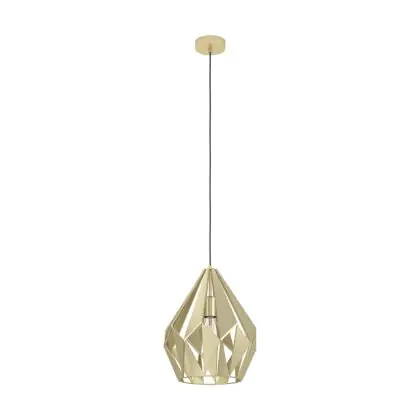 Die Eglo Pendelleuchte Carlton Stahl Gold | IP20 - Geeignet für 1x E27 sorgt für eine angenehme Ausleuchtung und punktet durch modernes Design. Diese Leuchte ist speziell zur Montage an der Decke vorgesehen.