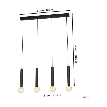 Beschreibung Eglo Pendelleuchte Corteva Stahl Schwarz | IP20 - Geeignet für 4x E27