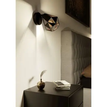 Eglo Wandleuchte Carlton 7 Stahl Schwarz Bernstein | IP20 - Geeignet für 1x E27