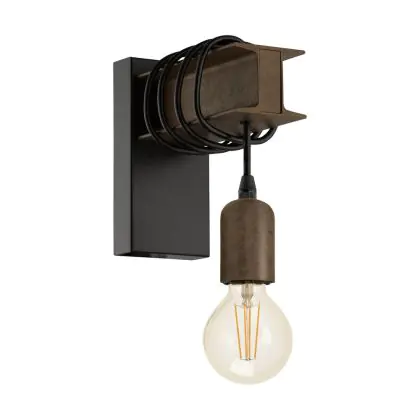 Eglo Wandleuchte Townshend 4 Stahl Schwarz Braun | IP20 - Geeignet für 1x E27