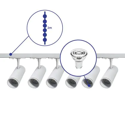 | Herstellername | Complete Straight 2-meter 1-Phase Track Set White incl. 6x Spot fixture + GU10 2700K 3W Dim – 2x 1 M | |