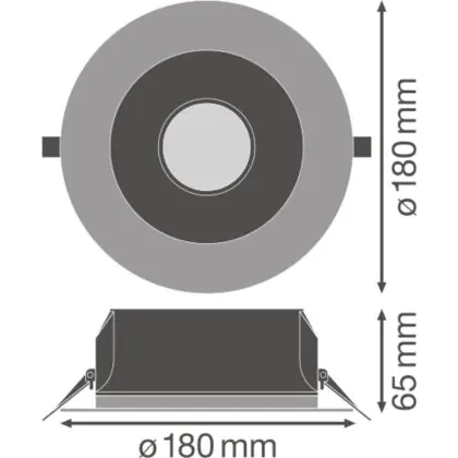 Beschreibung Ledvance LED Downlight Performance DN155 14W 1500lm 65D - 830 Warmweiß | 180mm - IP54 - Dali Dimmbar