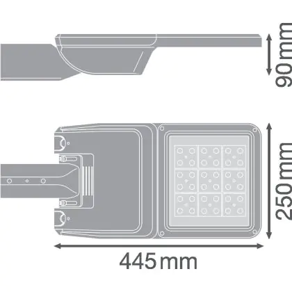 Beschreibung Ledvance LED-Straßenbeleuchtung Flex klein RV25ST Grau 36W 4950lm 25x145D - 730 Warmweiß | IP66 – Asymmetrisch