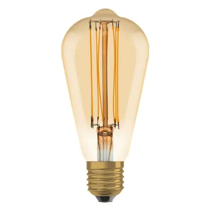 Die Ledvance Vintage 1906 LED E27 Birne Gold 8.8W 806lm - 822 Extra Warmweiß | Dimmbar - Ersatz für 60W ist eine effiziente E27 LED-Lampe mit Retrodesign und der perfekte Ersatz für Ihre konventionellen 60W Lampen mit E27. Zudem strahlt sie Licht in der Farbtemperatur 2200K - Extra Warmweiß aus und punktet durch eine lange Lebensdauer.