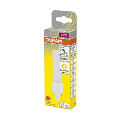 Die Mehrfachpackung 10x Osram Dulux-S LED 3.5W 360lm - 830 Warmweiß | 2-Pins - Ersatz Für 7W ist eine Kompaktleuchtstofflampe von Osram. Das Produkt mit 2 Pins strahlt Licht in der Farbtemperatur aus und punktet durch eine lange Lebensdauer.