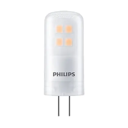 Die Mehrfachpackung 10x Philips CorePro LED Kapsel G4 Matt 2.1W 210lm - 827 Extra Warmweiß | Dimmbar - Ersatz Für 20W ist eine effiziente G4 LED-Lampe und der perfekte Ersatz für Ihre konventionelle Halogenlampe mit 20W und einem G4-Sockel. Die Stifte haben einen Abstand von 4 mm. Zudem strahlt das Produkt Licht in der Farbtemperatur aus und punktet durch eine lange Lebensdauer.