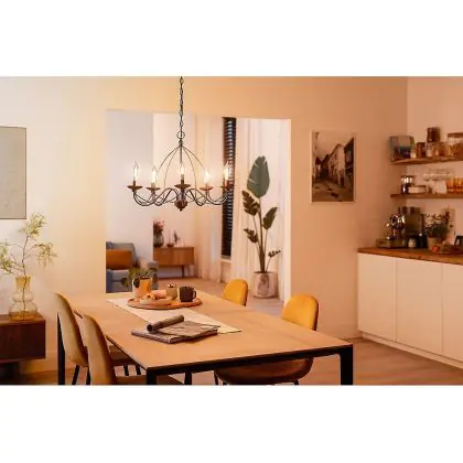 Die E14 LED-Lampe von Philips hat als Farbtemperatur. Als Faustregel gilt: Je niedriger der Kelvinwert, desto gemütlicher wirkt das Licht.