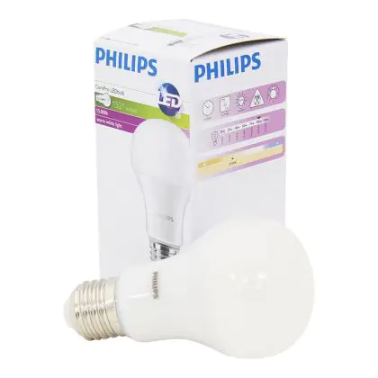 Die E27 LED-Lampe von Philips kann mit der Farbtemperatur 3000K - Warmweiß sowohl als Akzent- als auch als Allgemeinbeleuchtung verwendet werden. Als Faustregel gilt: Je niedriger der Kelvinwert, desto gemütlicher wirkt das Licht.