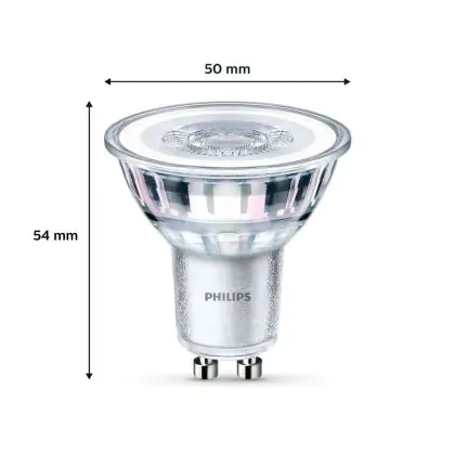 Die Lumeneffizienz des GU10 LED-Strahlers von Philips liegt bei lm/W. Herkömmliche GU10-Strahler hingegen besitzen ein Lumen zu Watt-Verhältnis von 10-15 lm/W. Somit sparen Sie allerhand Energiekosten. Hinzu kommt die lange Lebensdauer des GU10 LED-Strahlers von 15000. Somit spendet er deutlich länger Licht als ein herkömmlicher Halogenstrahler, der mit nur rund 3000 Stunden daherkommt. Das spart Ihnen zusätzlich Austausch- und Wartungskosten.