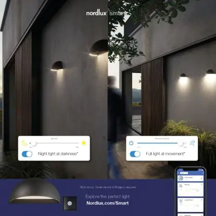 Beschreibung Nordlux Arcus Smart LED Wandleuchte Schwarz 9.5W 440lm 148D – 827 - Extra Warmweiß | Dimmbar - IP54