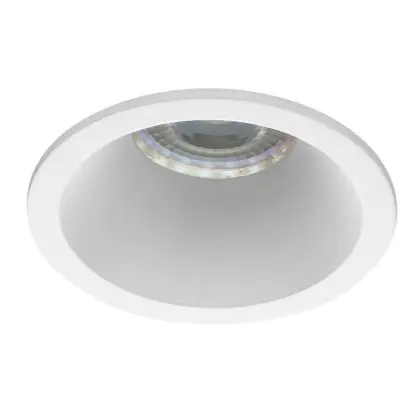 Das runde Aluminiumgehäuse hat einen Durchmesser von 82 mm und ist in einem zeitlosen Weiß gehalten. Es hat einen Ausschnitt mit einem Durchmesser von 70 mm, in den das GU10-Leuchtmittel eingesetzt wird.