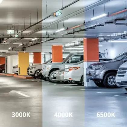Die LED-Feuchtraumleuchte kommt mit der Farbtemperatur 3000K - 4000K - 6500K CCT daher. Als Faustregel gilt: Je niedriger der Kelvinwert, desto gemütlicher wirkt das Licht.