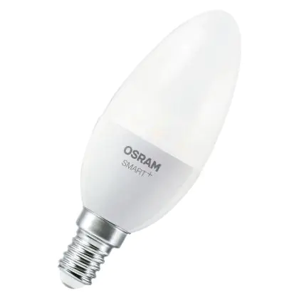 Die Osram Smart+ Kerze E14 Matt 4.9W 470lm - 827 Extra Warmweiß | Zigbee Dimmbar - Ersatz Für 40W ist eine effiziente E14 LED-Lampe und der perfekte Ersatz für Ihre konventionellen 40W Lampen mit E14-Sockel. Zudem strahlt sie Licht in der Farbtemperatur aus und punktet durch eine lange Lebensdauer.