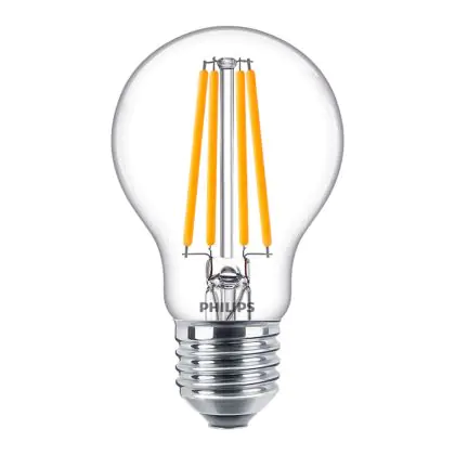 Die Philips Corepro LED Glühbirne E27 Birne Klar 10.5W 1521lm - 827 Extra Warmweiß | Ersatz für 100W ist eine effiziente E27 LED-Lampe und der perfekte Ersatz für Ihre konventionellen 100W Lampen mit E27-Sockel. Zudem strahlt sie Licht in der Farbtemperatur 2700K - Extra Warmweiß aus und punktet durch eine lange Lebensdauer.