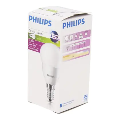 Die Philips Corepro LED Lustre E14 Kugel Matt 5W 470lm - 827 Extra Warmweiß | Ersatz für 40W ist eine effiziente E14 LED-Lampe und der perfekte Ersatz für Ihre konventionellen 40W Lampen mit E14-Sockel. Zudem strahlt sie Licht in der Farbtemperatur 2700K - Extra Warmweiß aus und punktet durch eine lange Lebensdauer.