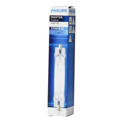 Die Philips MASTERColour CDM-TD 70W 830 RX7s überzeugt mit einer hohen Farbwiedergabestufe und mit einer angenehmen warmweißen Farbtemperatur.